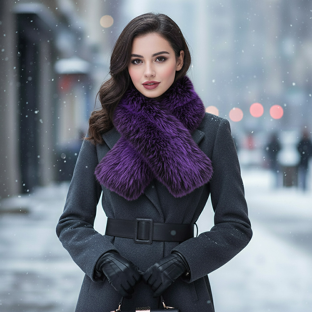 • Stay cozy and stylish with this plush faux fur winter scarf featuring a luxurious texture and bold, eye-catching design. Perfect for cold-weather outfits, it adds warmth and elegance to any ensemble, making it a must-have accessory for chic winter fashion.
