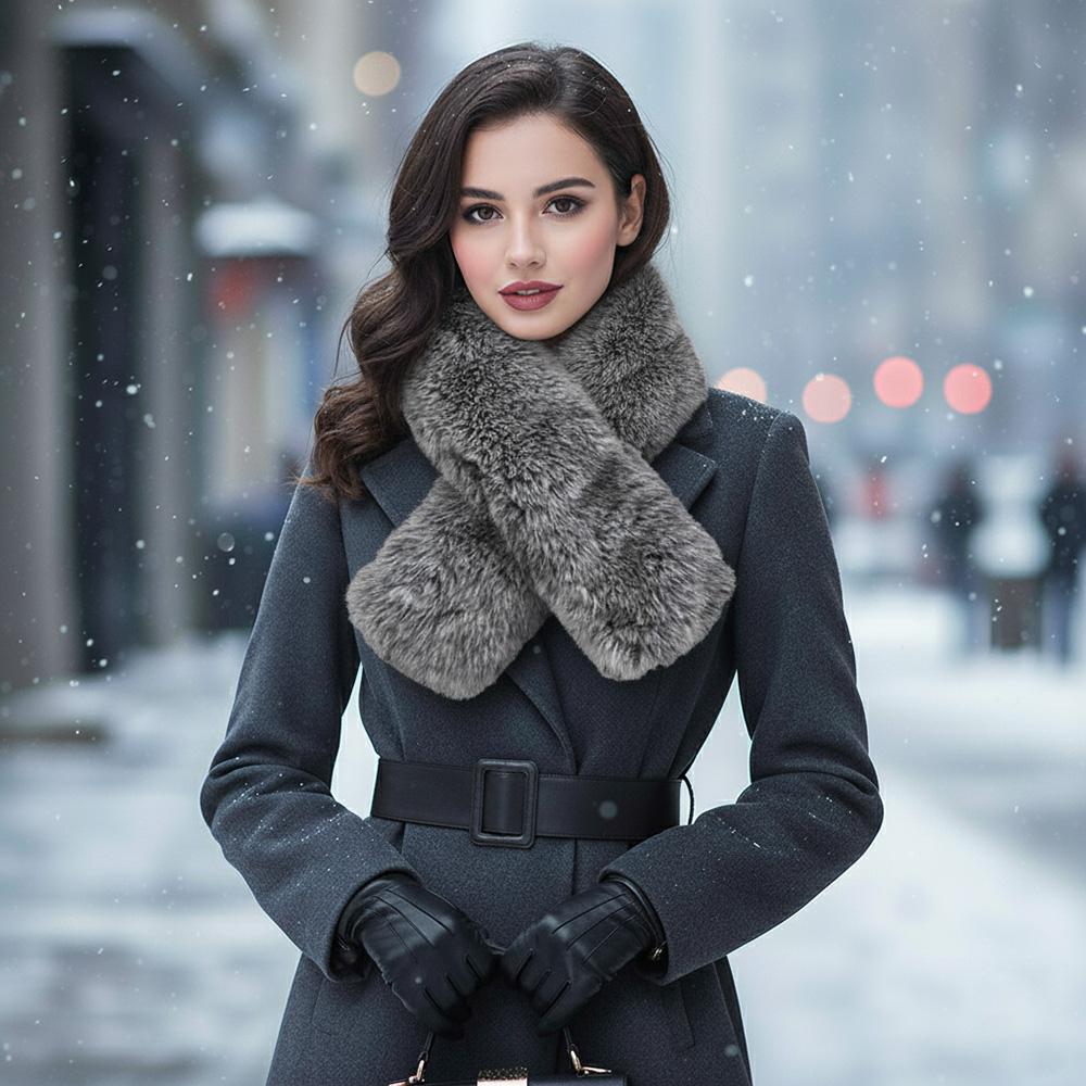 • Stay cozy and stylish with this plush faux fur winter scarf featuring a luxurious texture and bold, eye-catching design. Perfect for cold-weather outfits, it adds warmth and elegance to any ensemble, making it a must-have accessory for chic winter fashion.