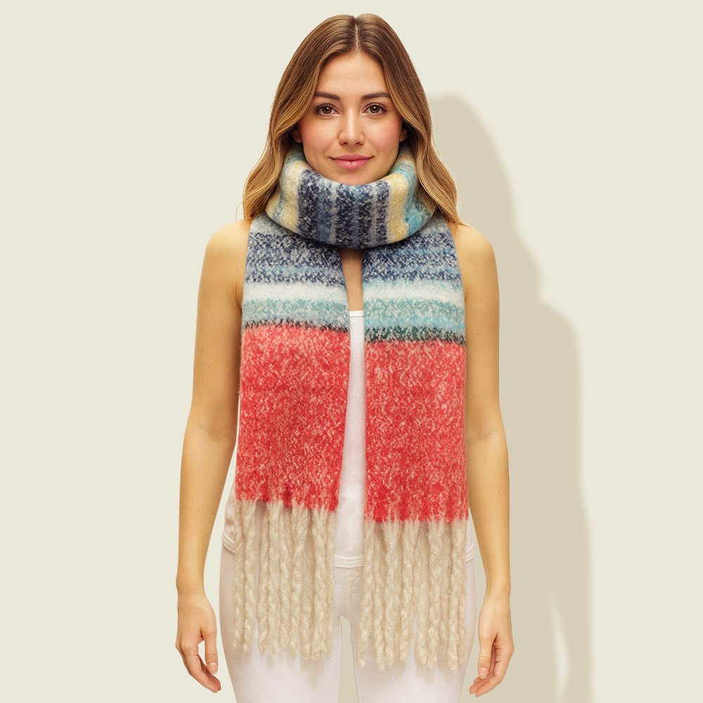 • Wrap up in cozy warmth with this striped winter scarf featuring an oversized design and soft textured finish. Accented with playful fringe, it’s perfect for layering over casual or dressy outfits. A versatile accessory that adds comfort, style, and extra warmth to any cold-weather look.