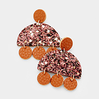 Faux Leather Metal Triple Abstract Plate Link Dangle Earrings