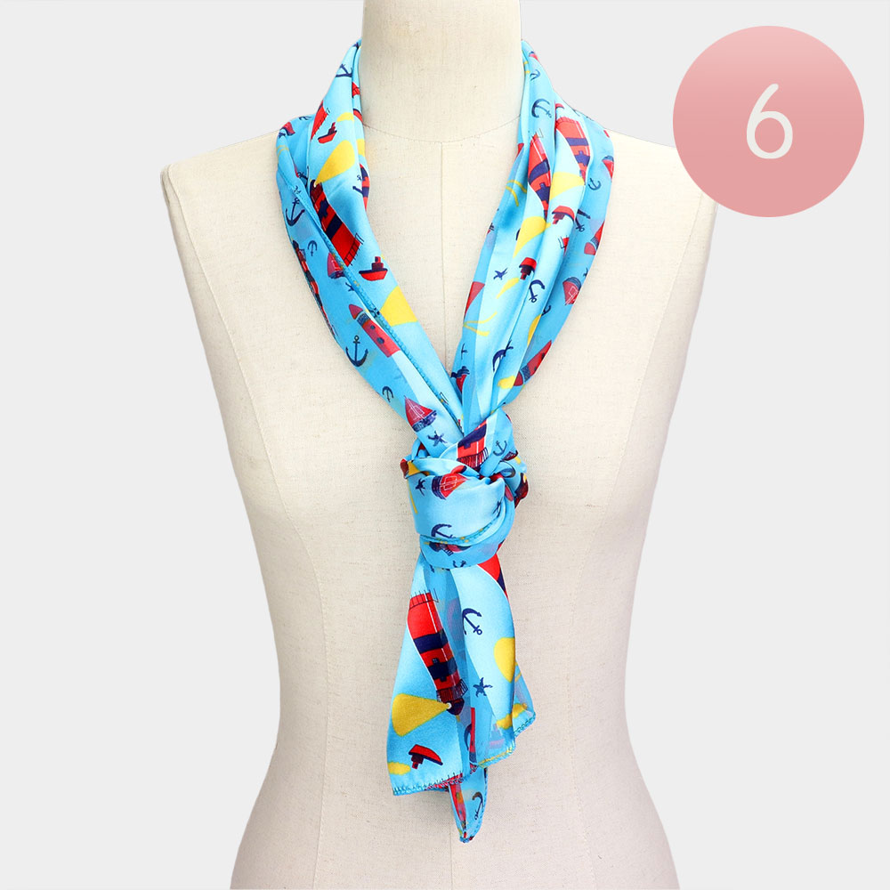 6PCS - Lighthouse Anchor Pattern Printed Scarf