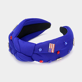 VOTE American USA Flag Star Stone Embellished Knot Headband