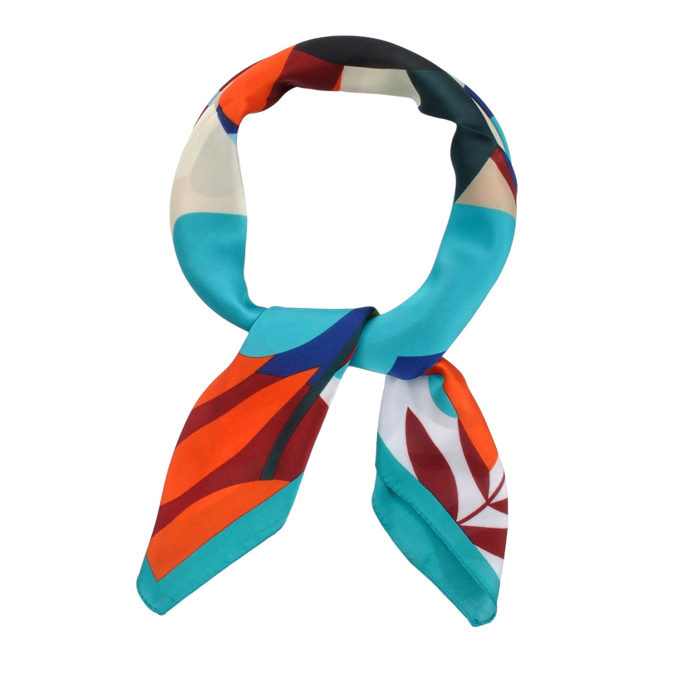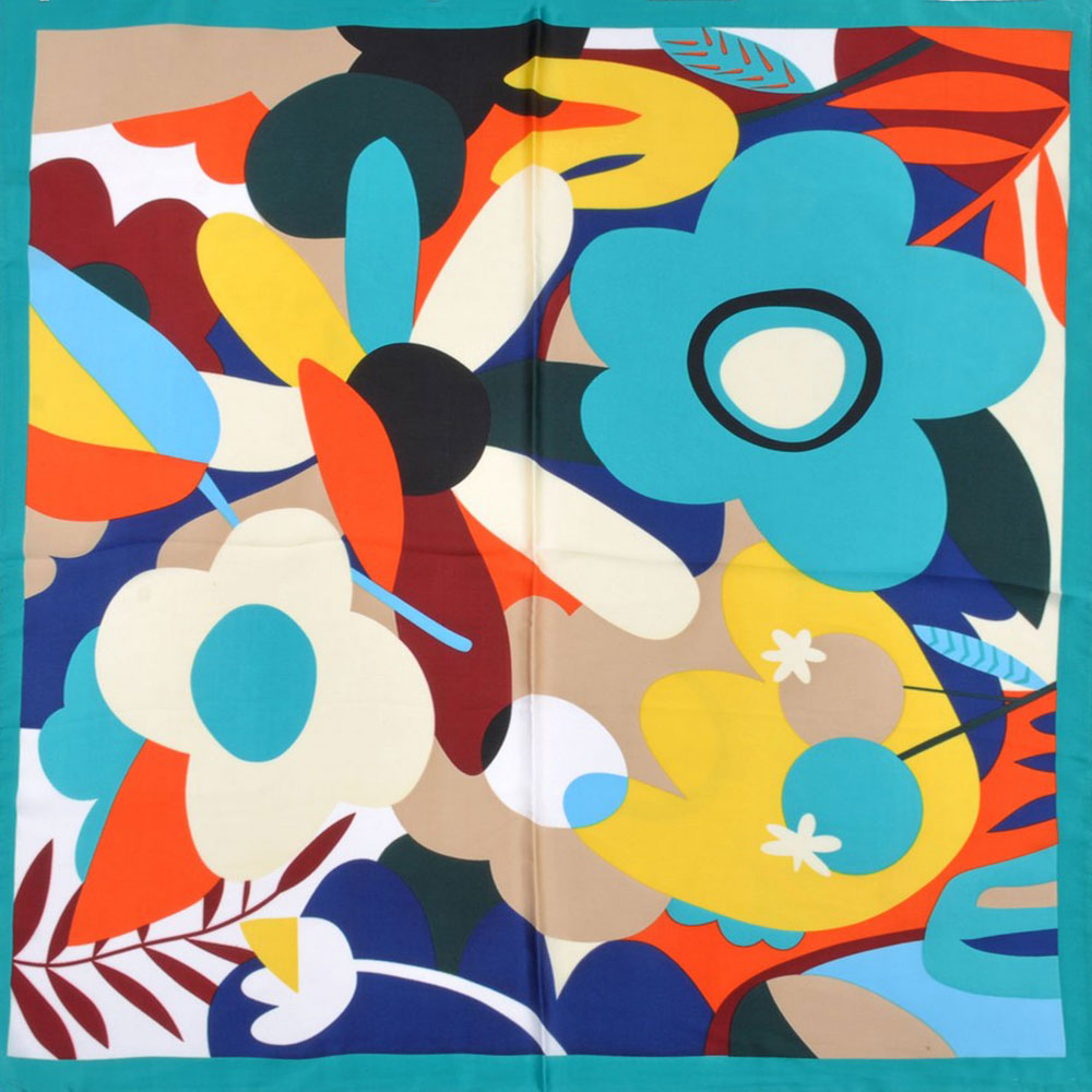 Details • Size : 27.5" X 27.5" • Material : 100% Polyester • Add vibrant elegance to any outfit with this square scarf featuring an expressive abstract floral design. Its bold, artistic pattern elevates everyday looks, making it a standout accessory for styling around the neck, hair, or handbag with ease.