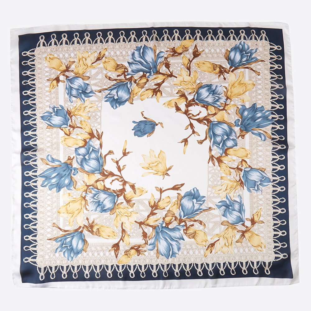Classy Floral Printed Square Silky Satin Bandana Scarf
