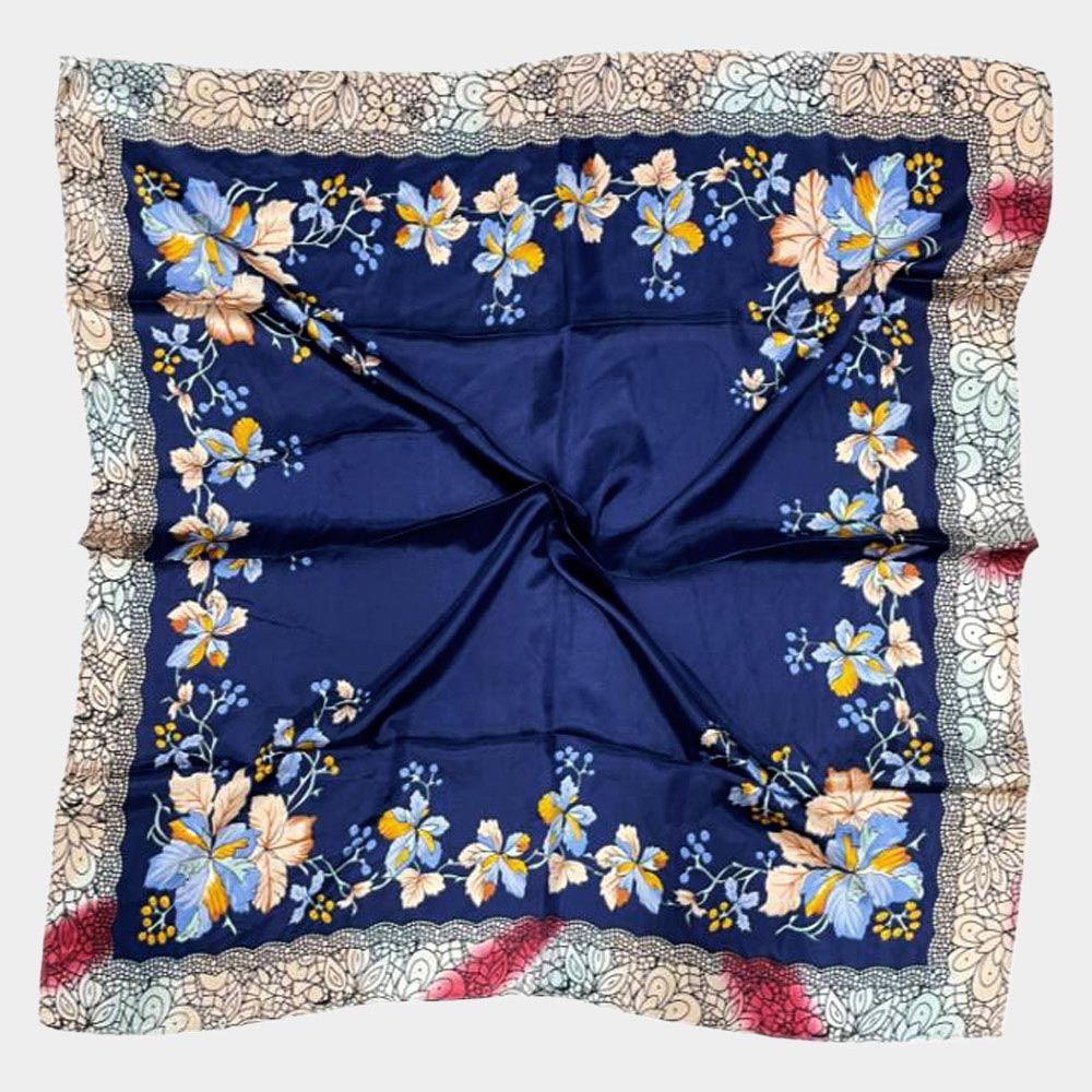 Flower Pattern Printed Square Silky Satin Scarf Shawl Flower Pattern Printed Square Silky Satin Scarf Shawl