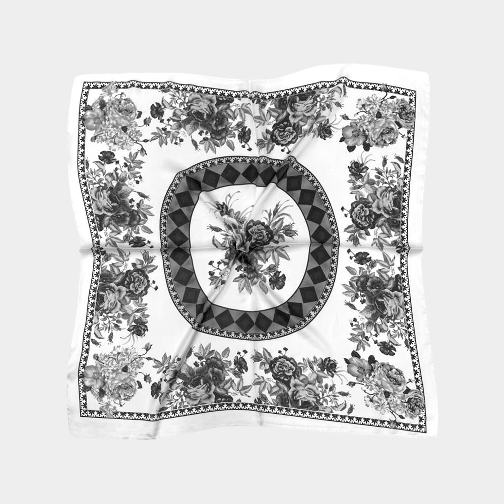 Flower Printed Square Silky Satin Scarf Shawl