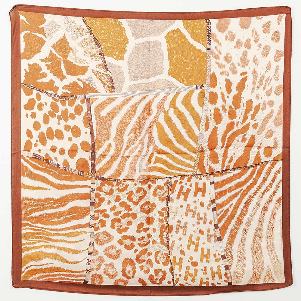 • Elevate your accessory game with this square scarf featuring a bold patchwork of animal prints. Perfect for adding a wild yet stylish touch to any outfit.