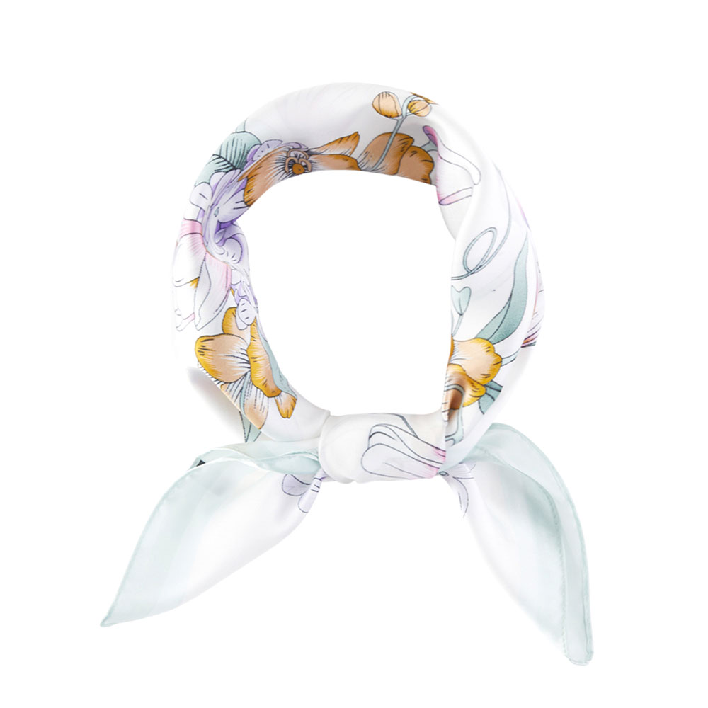 • Embrace the freshness of spring with this lovely square scarf. It features beautifully arranged floral bouquets showcasing delicate tulips and hyacinths in soft pastel and accent colors. Made from a silky, satin-feel fabric, this scarf is lightweight and perfect for adding a feminine, garden-inspired touch to your hair or neckline. A perfect accessory for daytime events, brunch, or gifting.
