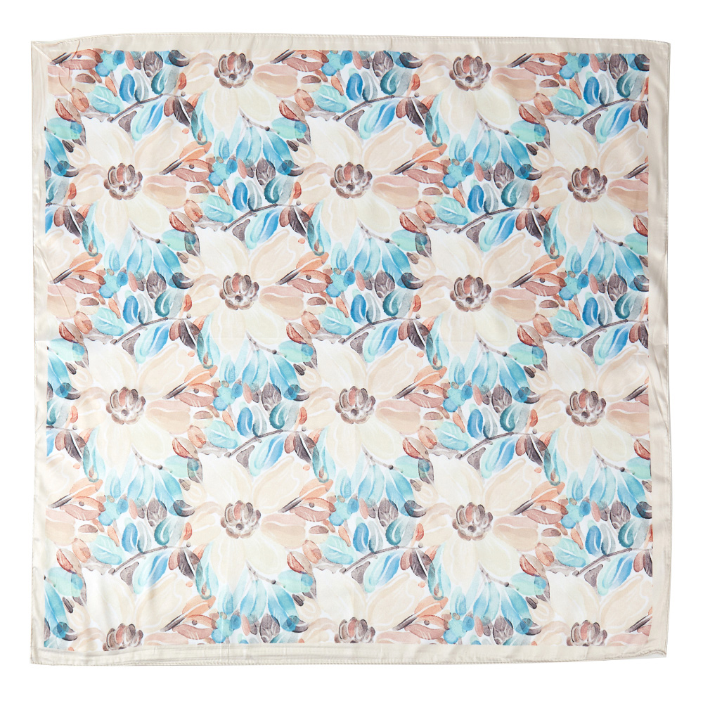 Watercolor Floral Pattern Printed Square Silky Satin Bandana Scarf