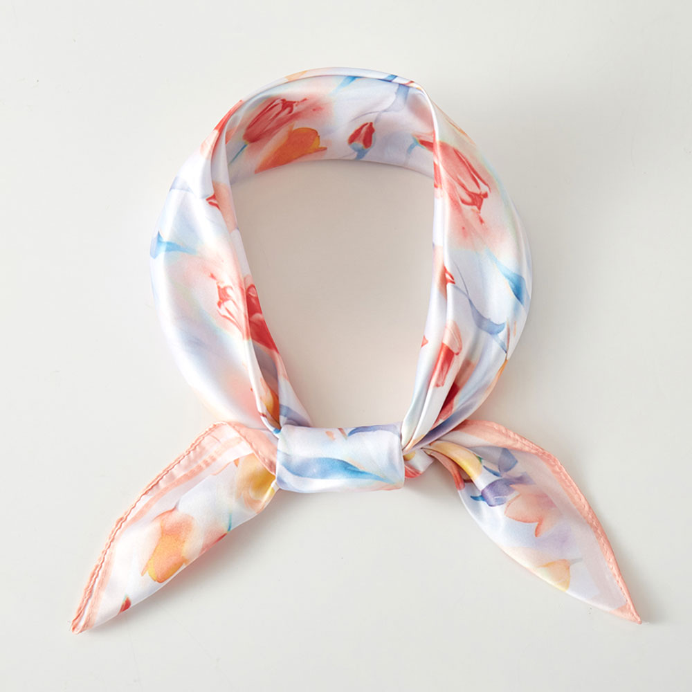 Watercolor Tulip Pattern Printed Square Silky Satin Bandana Scarf Watercolor Tulip Pattern Printed Square Silky Satin Bandana Scarf Watercolor Tulip Pattern Printed Square Silky Satin Bandana Scarf