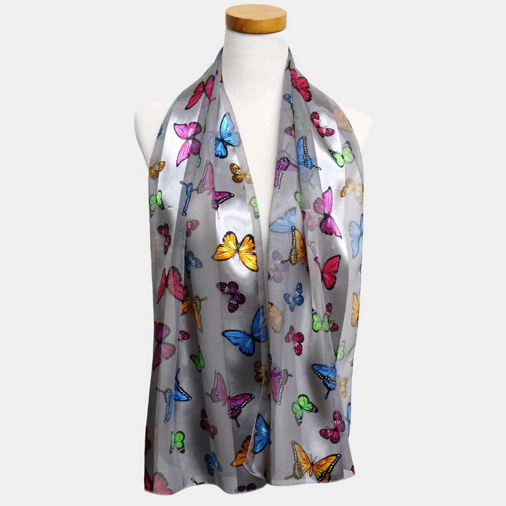 6PCS - Silk Feel Satin Butterfly Patterned Scarves