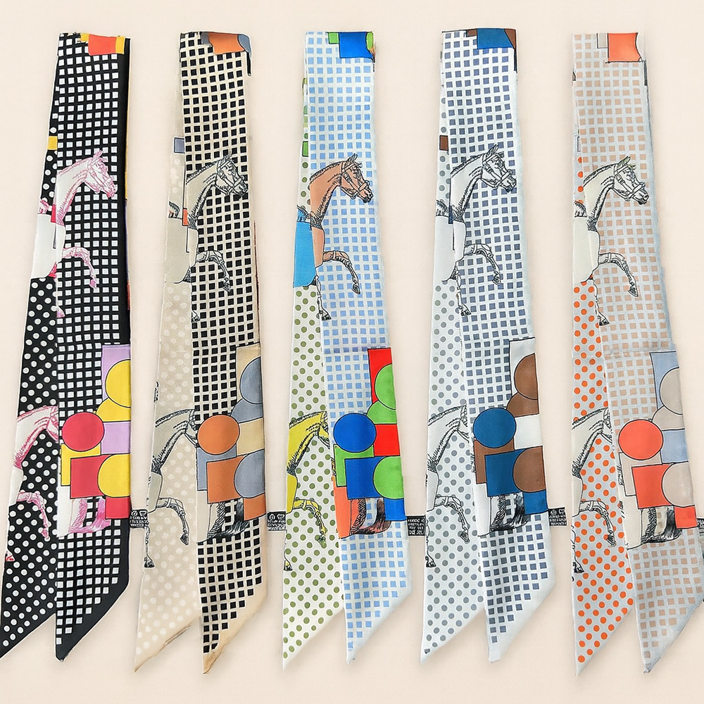 Abstract Horse Grid Pattern Printed Twilly Skinny Scarf Abstract Horse Grid Pattern Printed Twilly Skinny Scarf Abstract Horse Grid Pattern Printed Twilly Skinny Scarf