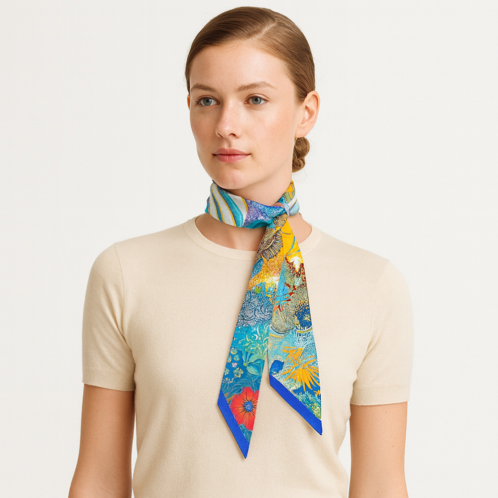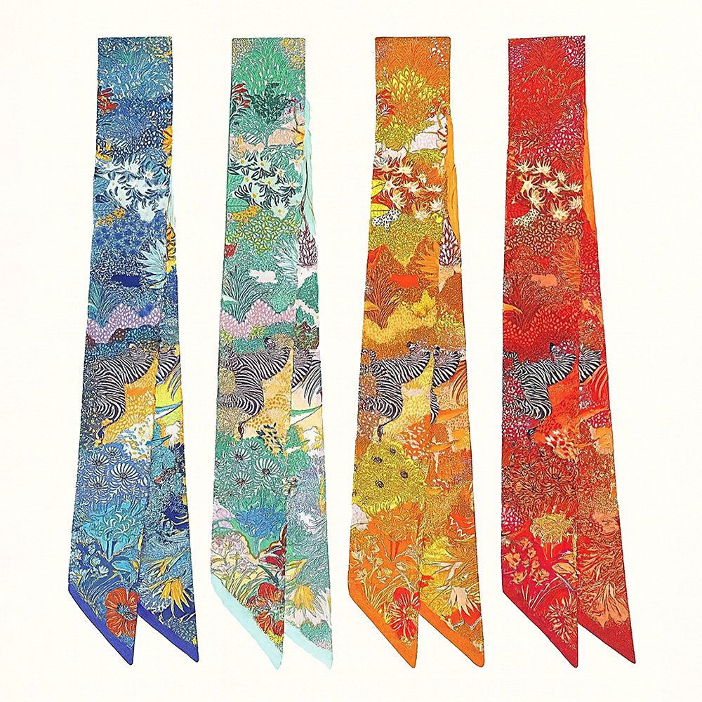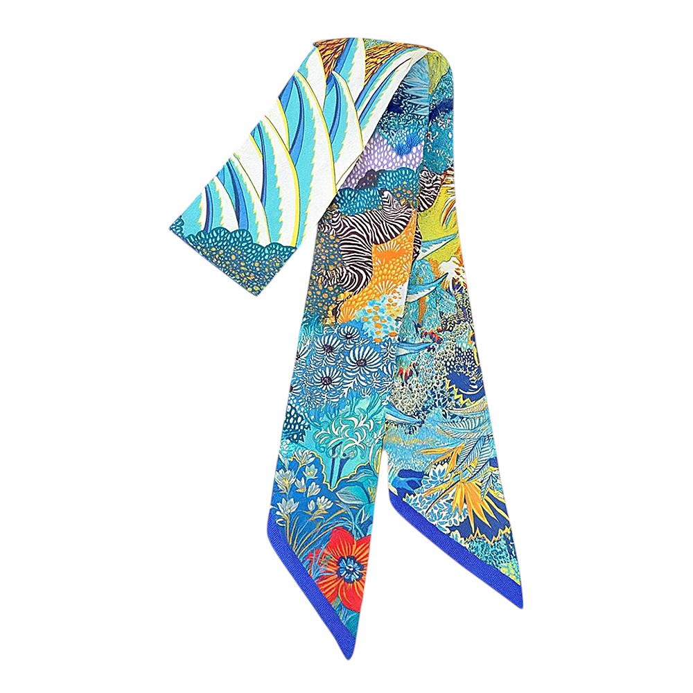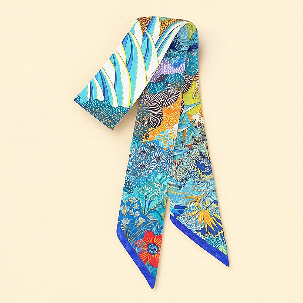 Details • Size : 2" X 35.4" • Material : 100% Polyester • Elevate your style with this skinny silk scarf showcasing a vibrant mix of floral and abstract patterns in bold blue tones. Perfect as a neck scarf, hair accessory, or bag accent, this versatile piece adds a pop of color and elegance to any outfit effortlessly.