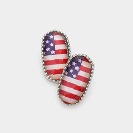 Enamel American USA Flag Ice Cream Cone Pearl Heart Beads Charm Dangle Earrings