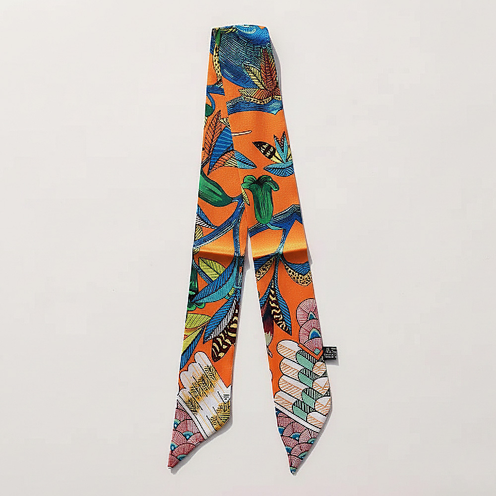 Details • Size : 2" X 35.4" • Material : 100% Polyester • Elevate your style with this skinny silk scarf featuring a vibrant floral pattern. Perfect for tying around your neck, hair, or handbag, this versatile accessory adds a chic, artistic, and timeless touch to both casual and elegant looks.