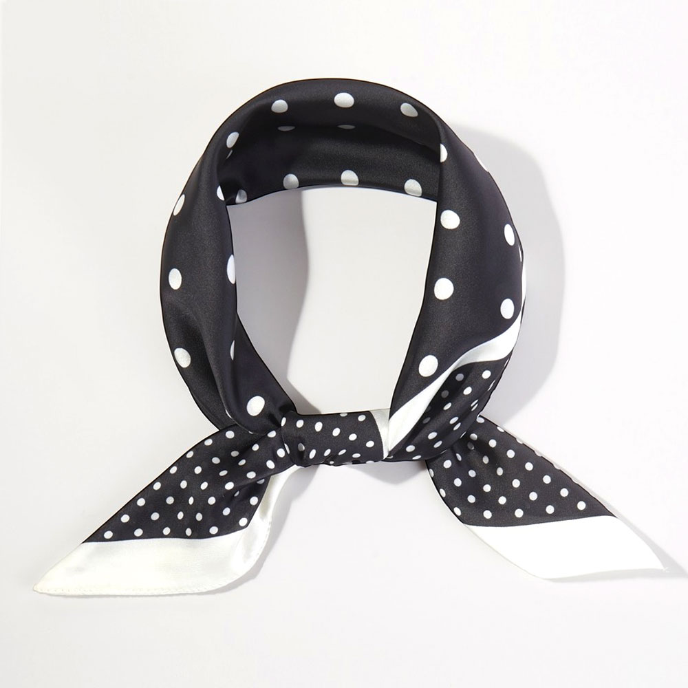 Details • Size : 27.5" X 27.5" • Material : 100% Polyester • Classic polka dot square scarf designed for effortless styling around the neck, hair, handbag, or wrist. A versatile fashion accessory that adds a timeless, retro-inspired accent to everyday outfits, seasonal wardrobes, and boutique collections with easy mix-and-match appeal.