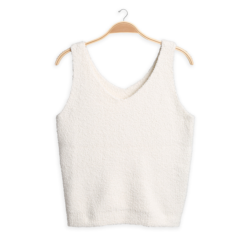• Stylish sleeveless knit top with a soft textured finish and flattering V-neckline, perfect for layering or lounging. Designed in a relaxed fit for everyday comfort, this versatile piece pairs effortlessly with matching pants or casual bottoms, making it an essential for chic and cozy outfits.