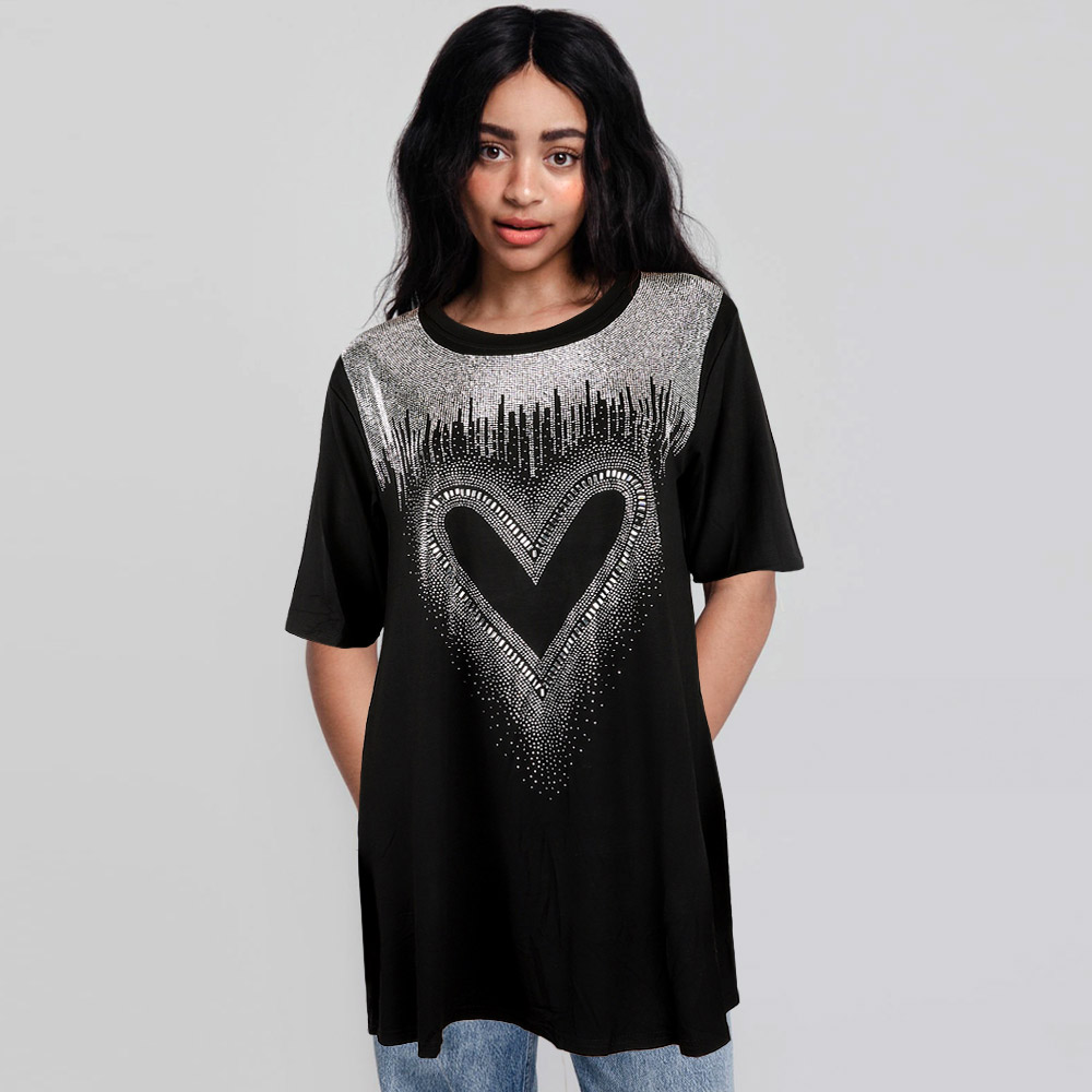 Stainless Steel Stone Paved Heart Charm Beaded Stretch Bracelet