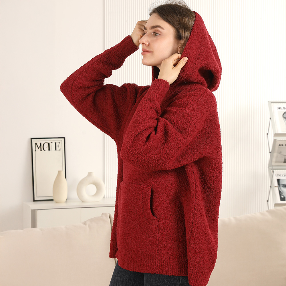 • Stay comfortable in this oversized hooded pullover featuring a relaxed fit and front pocket for added practicality. Designed with a plush texture and casual silhouette, it’s a versatile piece perfect for layering or wearing on its own during cooler days.