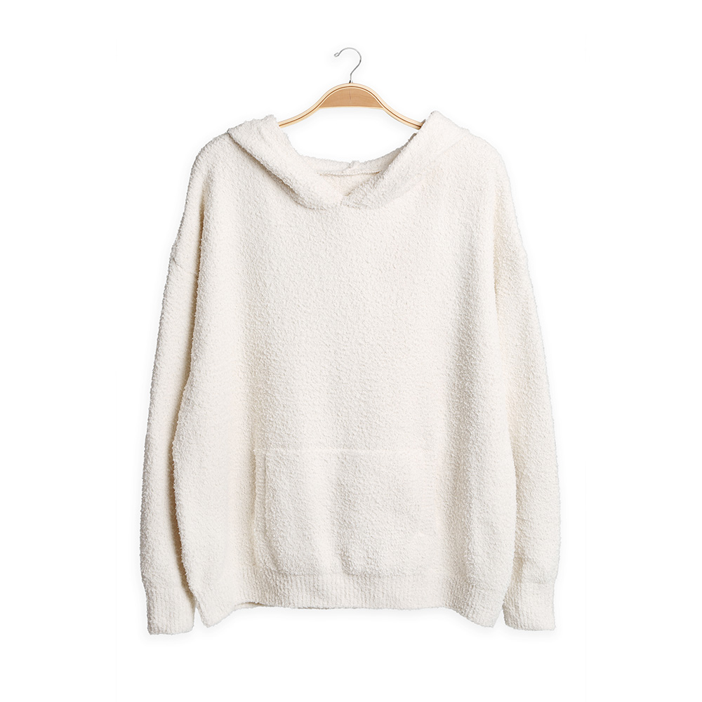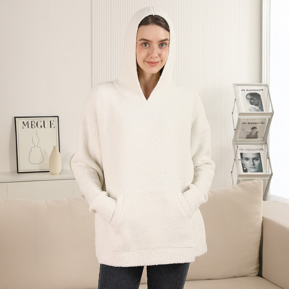 • Stay comfortable in this oversized hooded pullover featuring a relaxed fit and front pocket for added practicality. Designed with a plush texture and casual silhouette, it’s a versatile piece perfect for layering or wearing on its own during cooler days.