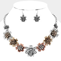Wooden Metal Bat Beaded Spike Statement Necklace