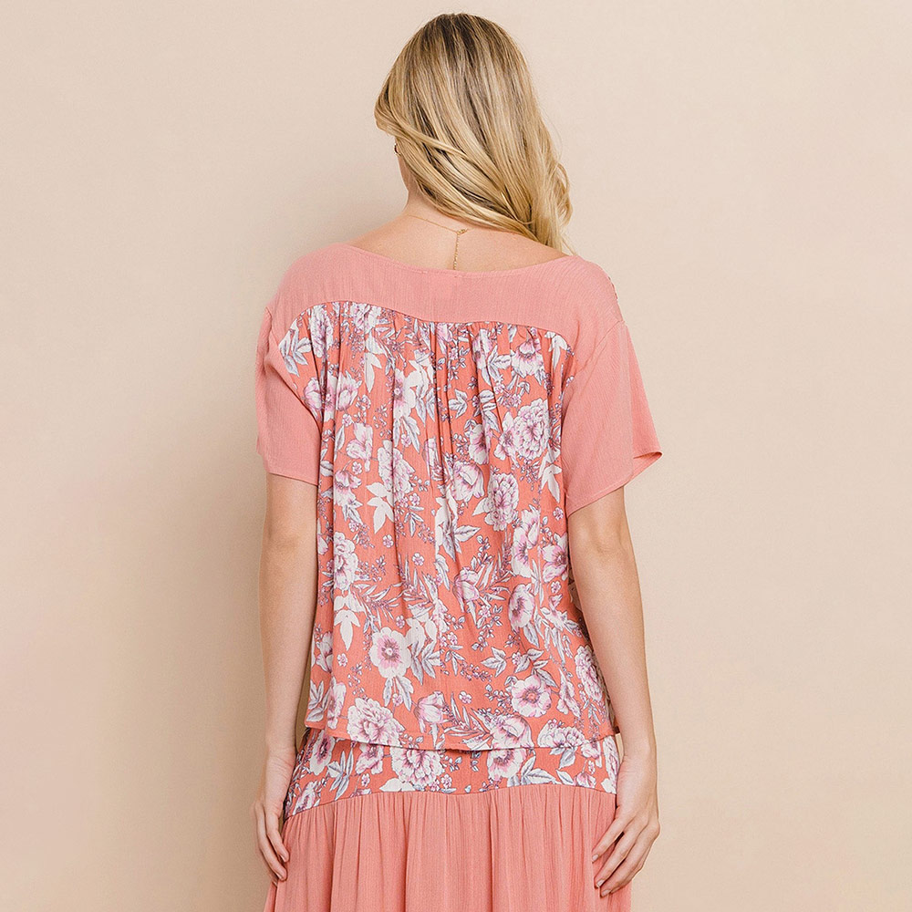 Details • Size : Small • Crafted from luxurious salmon-colored fabric adorned with delicate floral patterns, this ensemble exudes charm and sophistication. The top features a flattering silhouette with a V-neckline and short sleeves, Perfect for any occasion that effortlessly combines style and femininity for a timeless look. • • Short sleeve • 3 buttons • Floral design • Lightweight • Flowy • Pullover styling • Imported • Material : 100% Rayon • Care Instructions: Machine wash cold, Do Not Bleach, Drip dry, Iron Low