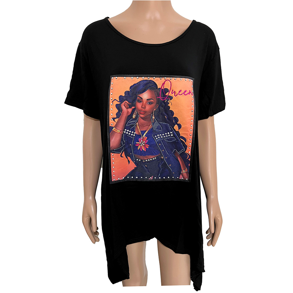Stone Studded QUEEN Message Glam Woman Printed Half Sleeve Top