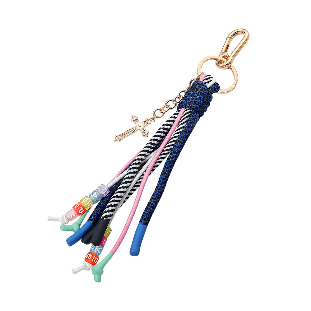 Details • Size : 8.5" L • Statement tassel keychain with layered cords, playful bead details, and a dangling charm, completed with a secure clip for easy attachment to keys, handbags, or backpacks. Adds texture, movement, and personality to everyday essentials while blending decorative style with functional design. • Lead and Nickel Compliant
