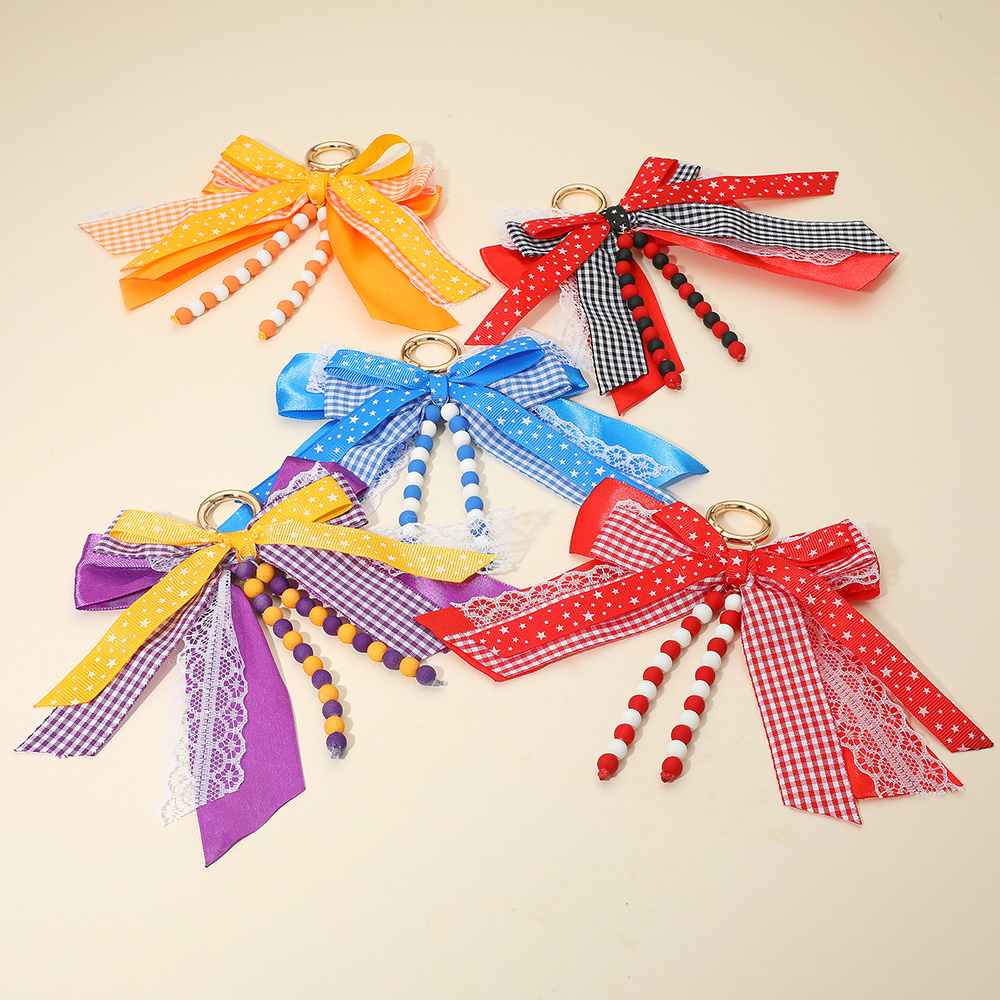 Details • Size : 5" X 6.75", 6.75" L • Show off your team spirit with this game day theme bag charm featuring layered ribbons, lace accents, and bead details. A fun and stylish accessory to personalize bags, totes, or backpacks, making it perfect for adding flair on game days or casual outings.