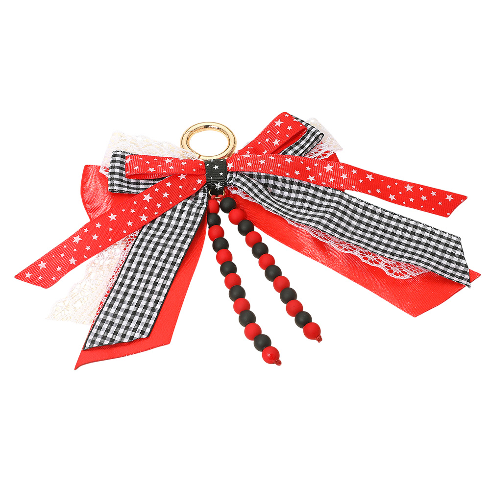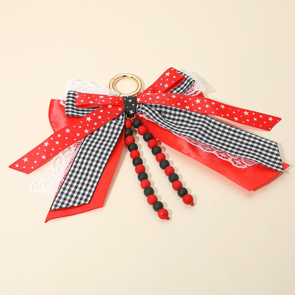 Details • Size : 5" X 6.75", 6.75" L • Show off your team spirit with this game day theme bag charm featuring layered ribbons, lace accents, and bead details. A fun and stylish accessory to personalize bags, totes, or backpacks, making it perfect for adding flair on game days or casual outings.