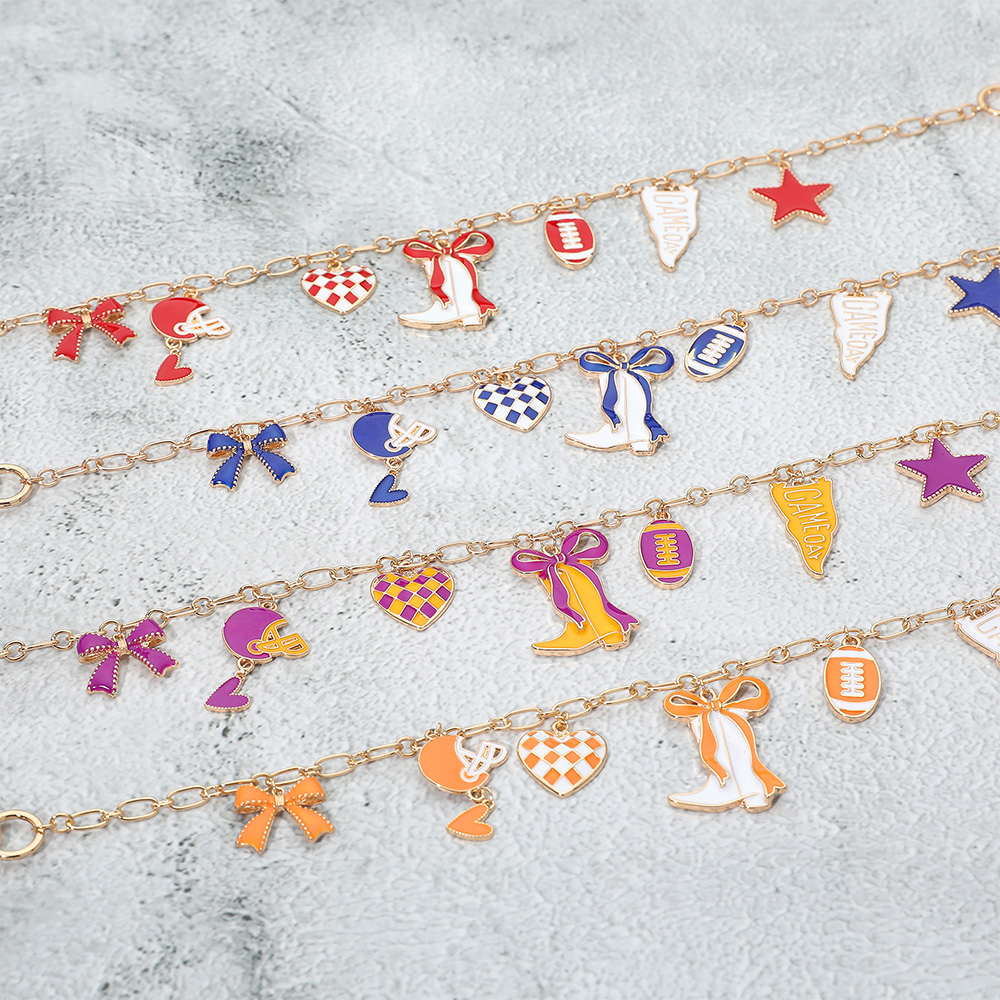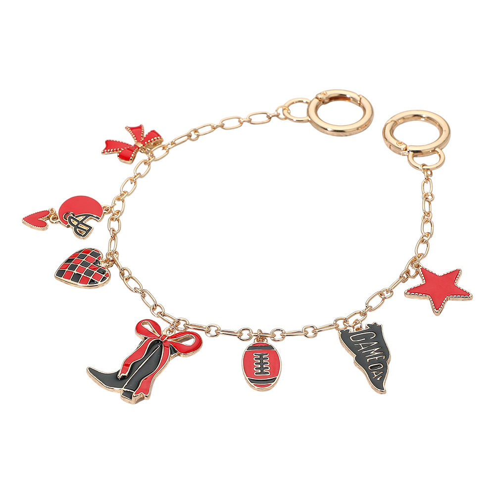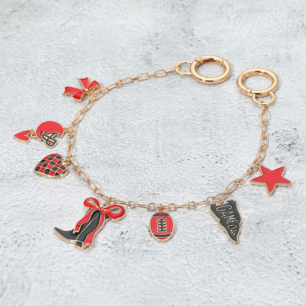 Details • Size : 13.5" L • Decor Size : 1.3" L • Bag charm featuring playful gameday accents including football, helmet, boots, stars, hearts, and cheer icons. A fun accessory to show team spirit, personalize bags, and add a sporty touch to gameday outfits. • Lead and Nickel Compliant