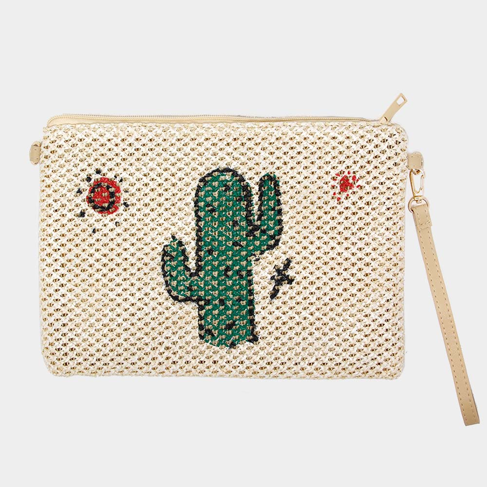 Felt Back Seed Beaded Cactus Accented Dangle Earrings