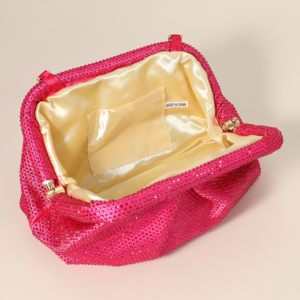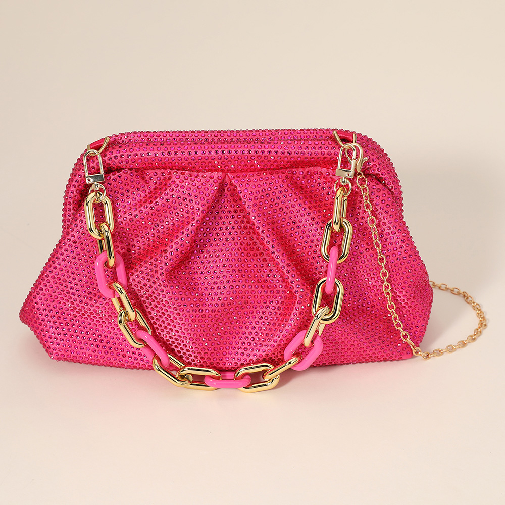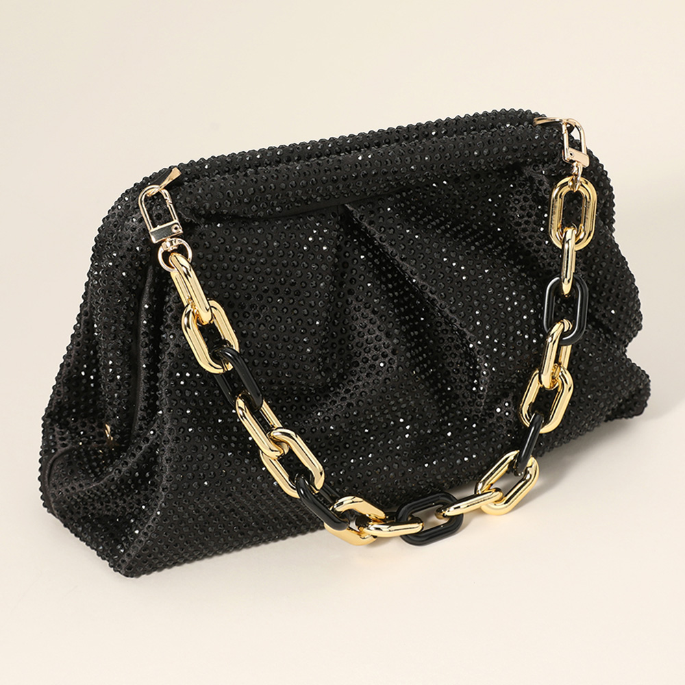 Bling Studded Chunky Chain Strap Accented Evening Clutch Bag / Crossbody Bag