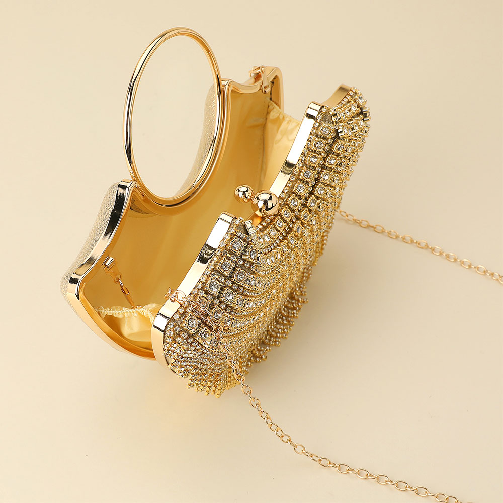 Crystal Rhinestone Fringe Embellished Round Handle Crossbody Evening Bag