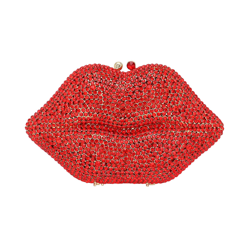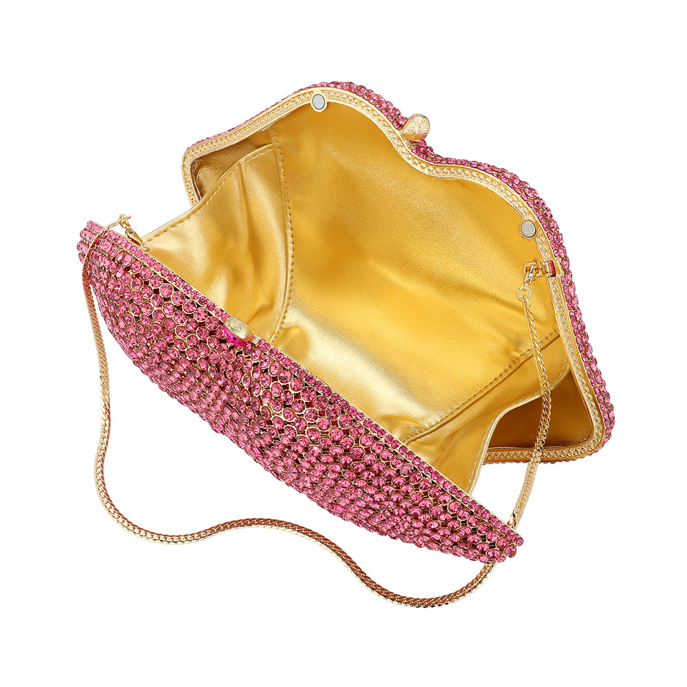 Crystal Rhinestone Lips Evening Clutch Shoulder Bag