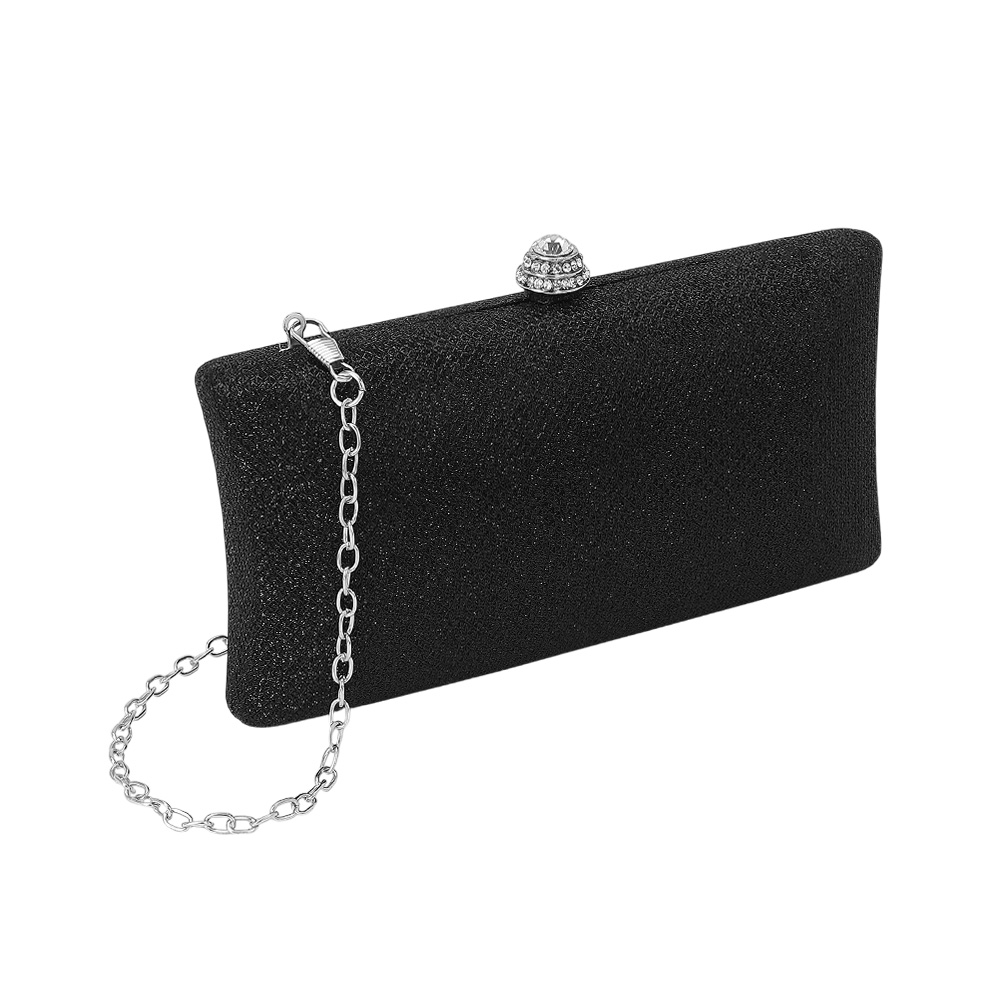 Details • Size : 7.25" X 4.25" X 2.25" • Strap Size : 46" L / Detachable • Clasp Closure • Chic evening clutch designed with a sparkling rhinestone clasp and detachable chain strap for versatile wear. Perfect for weddings, galas, or special events, this stylish handbag offers refined elegance while keeping your essentials secure in a sleek, timeless silhouette.