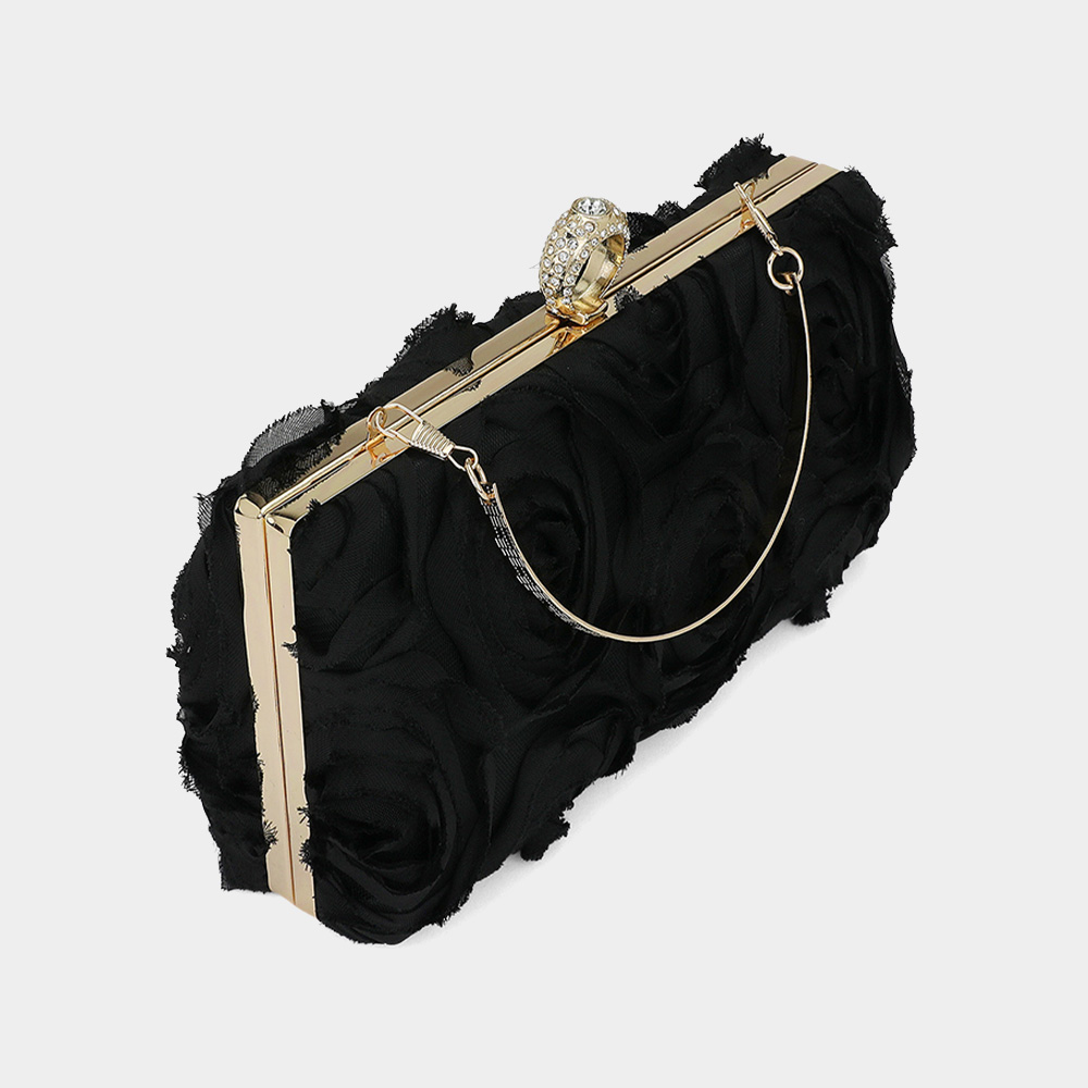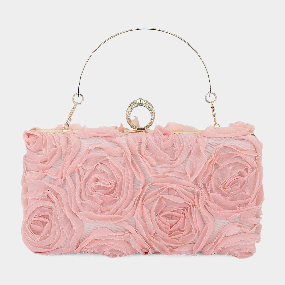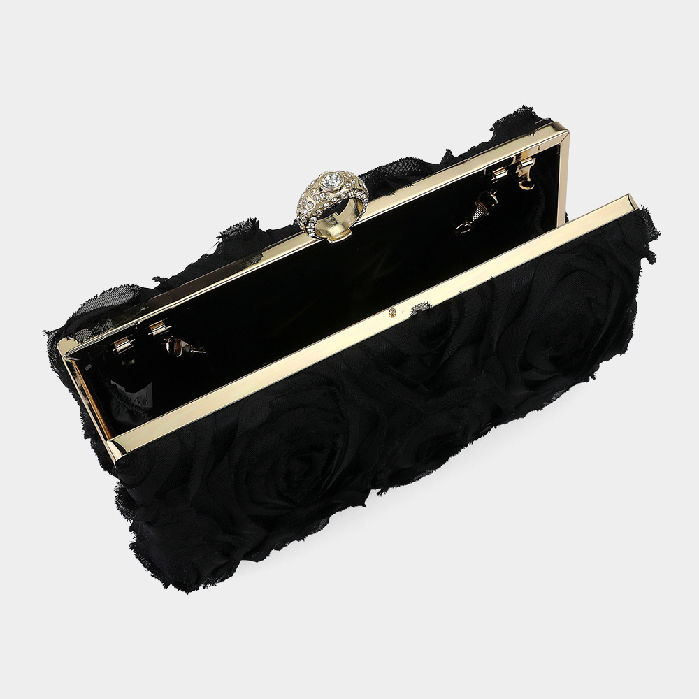 Fabric Flower Embellished Evening Bag / Clutch Bag / Crossbody Bag