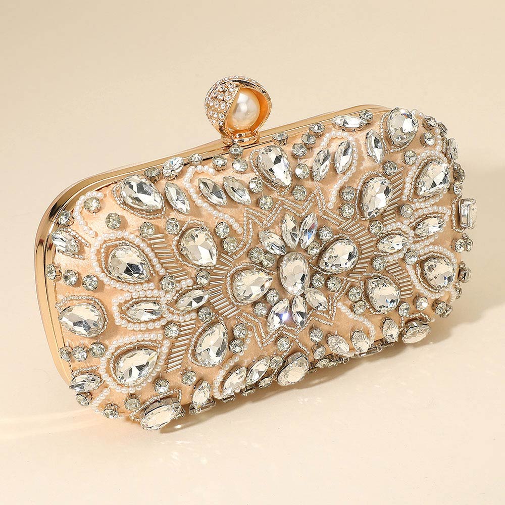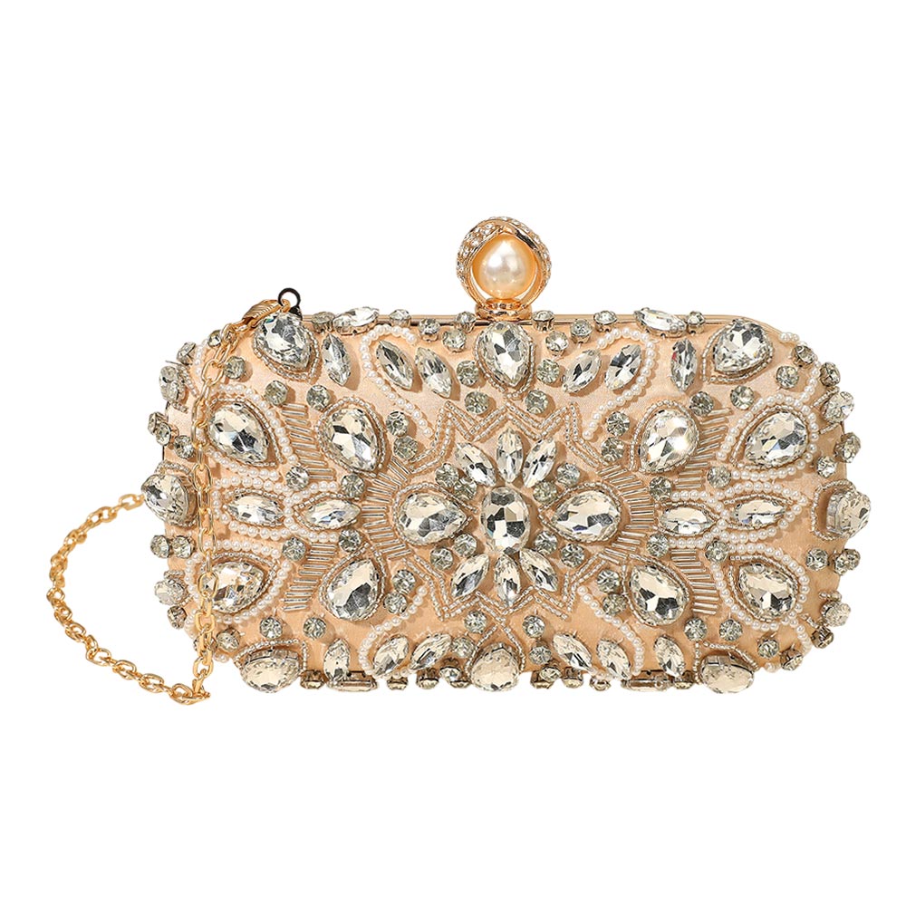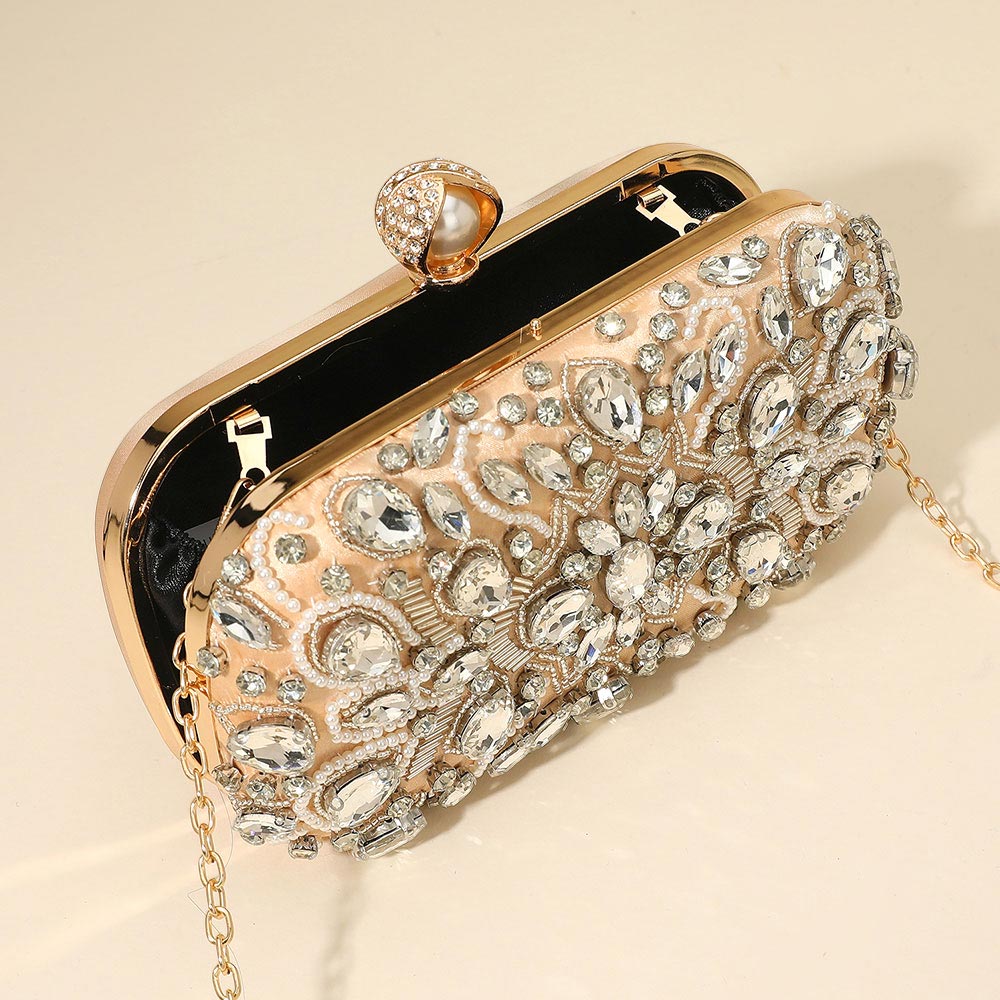 Pearl Clasp Crystal Stone Embellished Evening Crossbody Clutch Bag