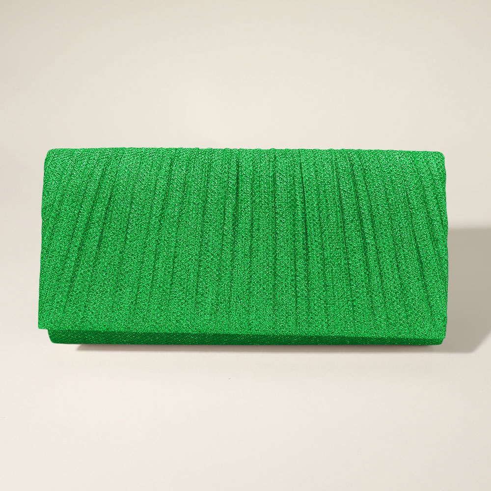 • A modern pleated evening clutch designed to complement any elegant ensemble. With a sleek silhouette and practical interior, it’s perfect for special occasions, weddings, or parties, offering a blend of style and convenience for your essentials.