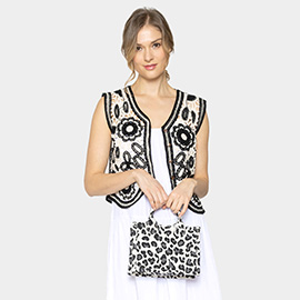 Animal Patterned Genuine Leather Stitch Crossbody Bag