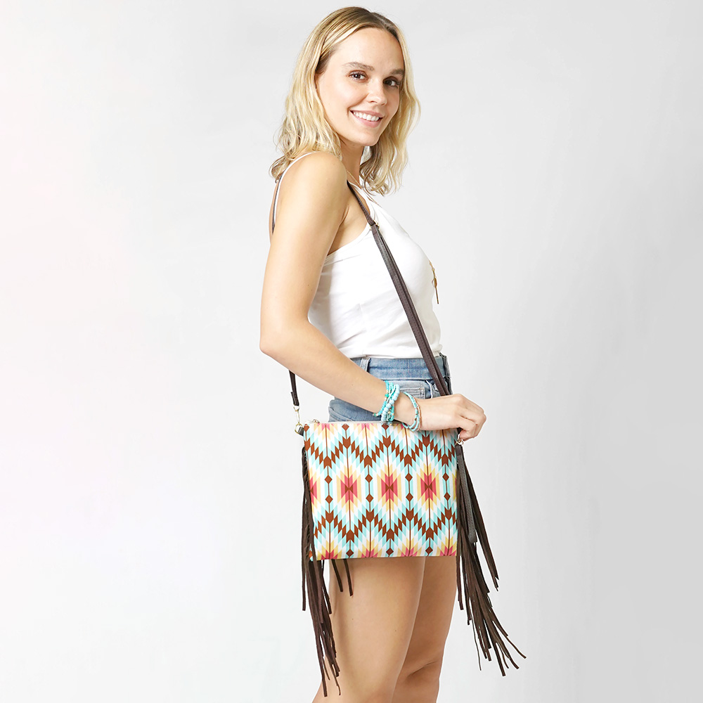 Aztec Print Tassel Wristlet Clutch / Crossbody Bag