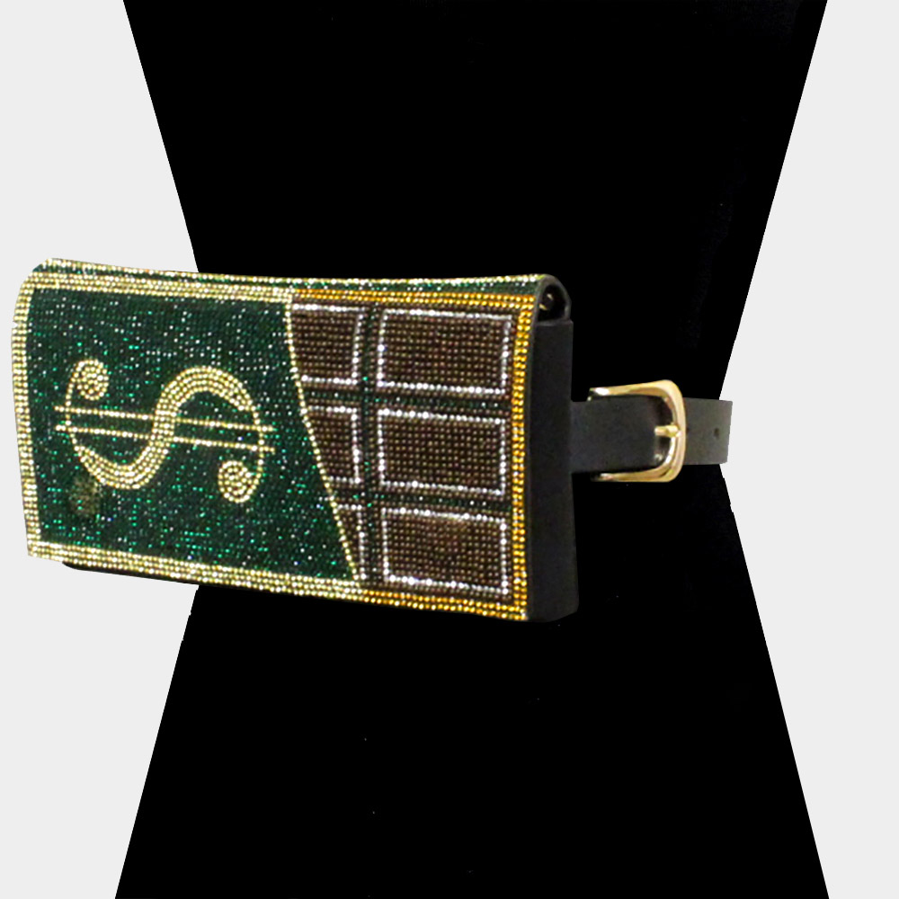 Bling Dollar Sign Chocolate Fanny Pack / Belt / Crossbody Bag