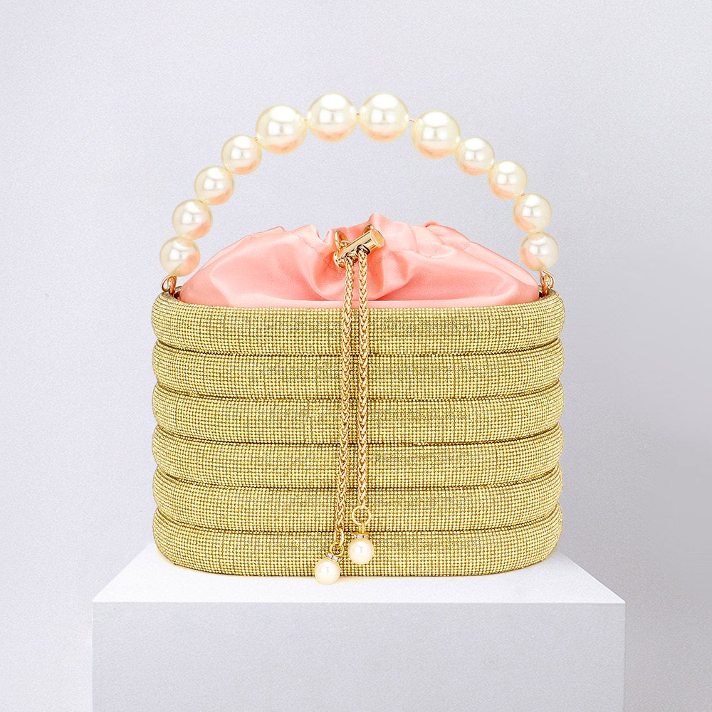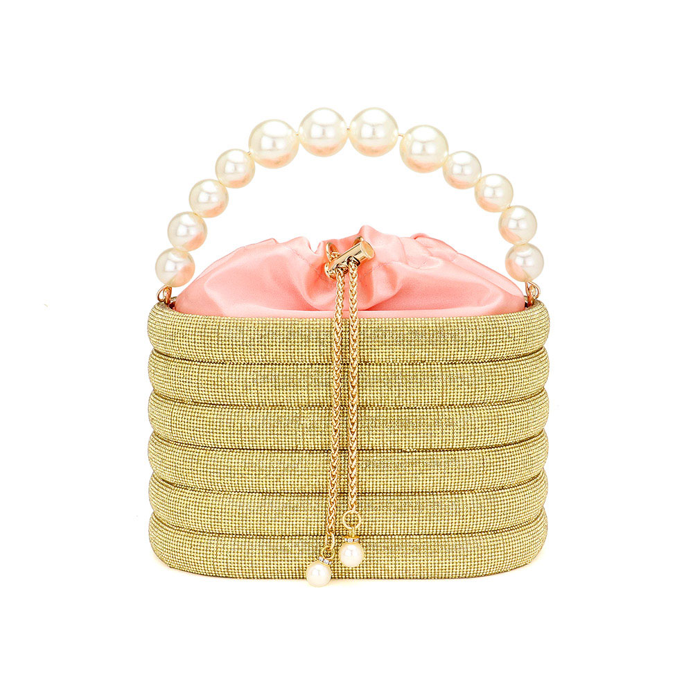 Bling Pearl Top Handle Drawstring Box Crossbody Bag