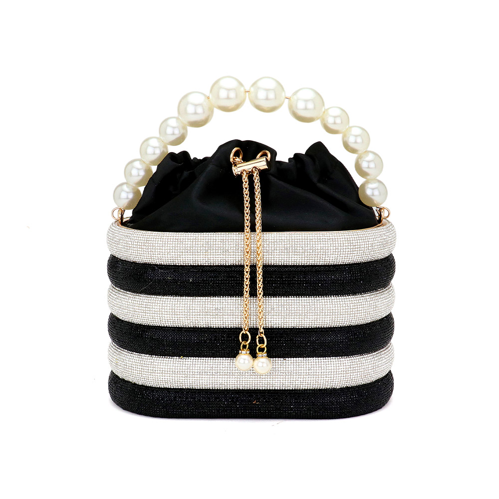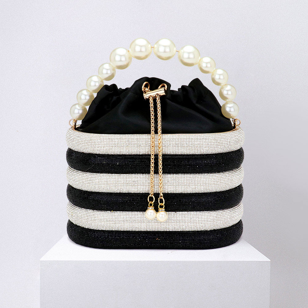Bling Pearl Top Handle Drawstring Box Crossbody Bag