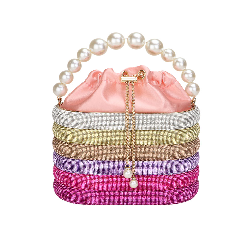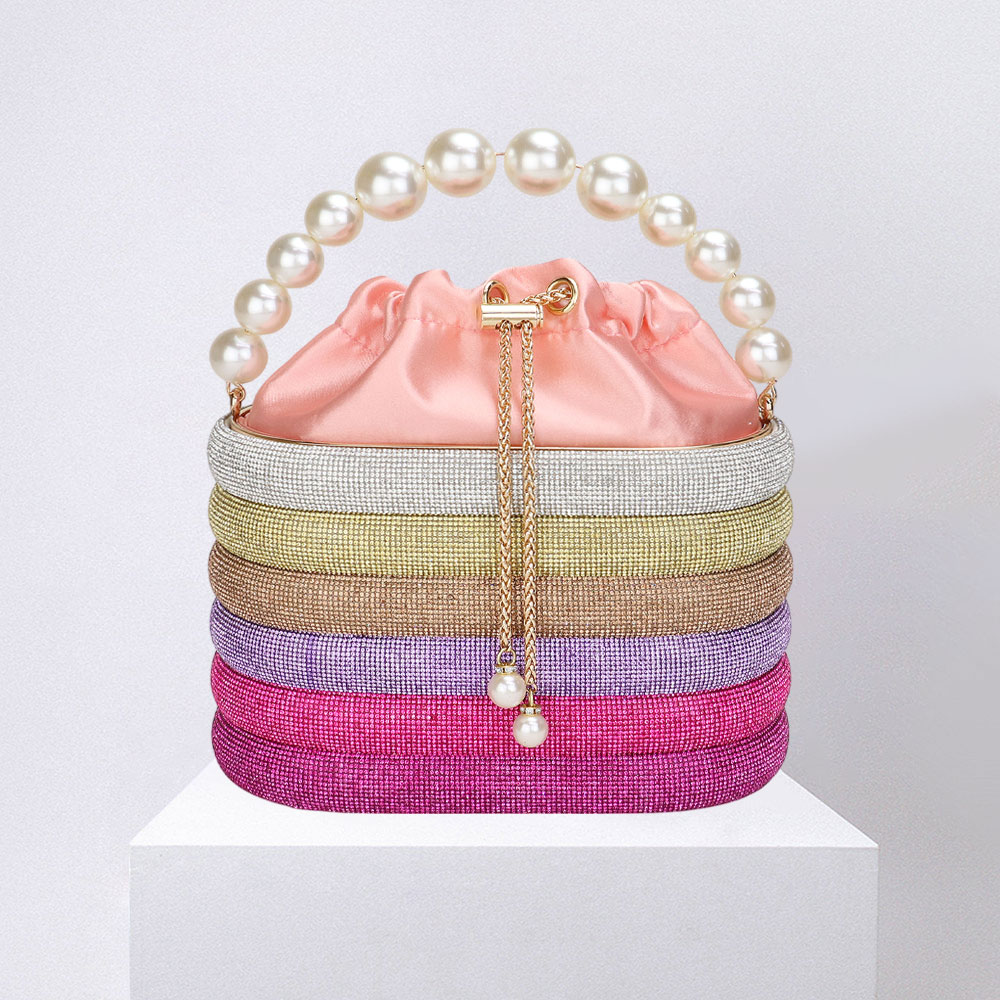 Bling Pearl Top Handle Drawstring Box Crossbody Bag