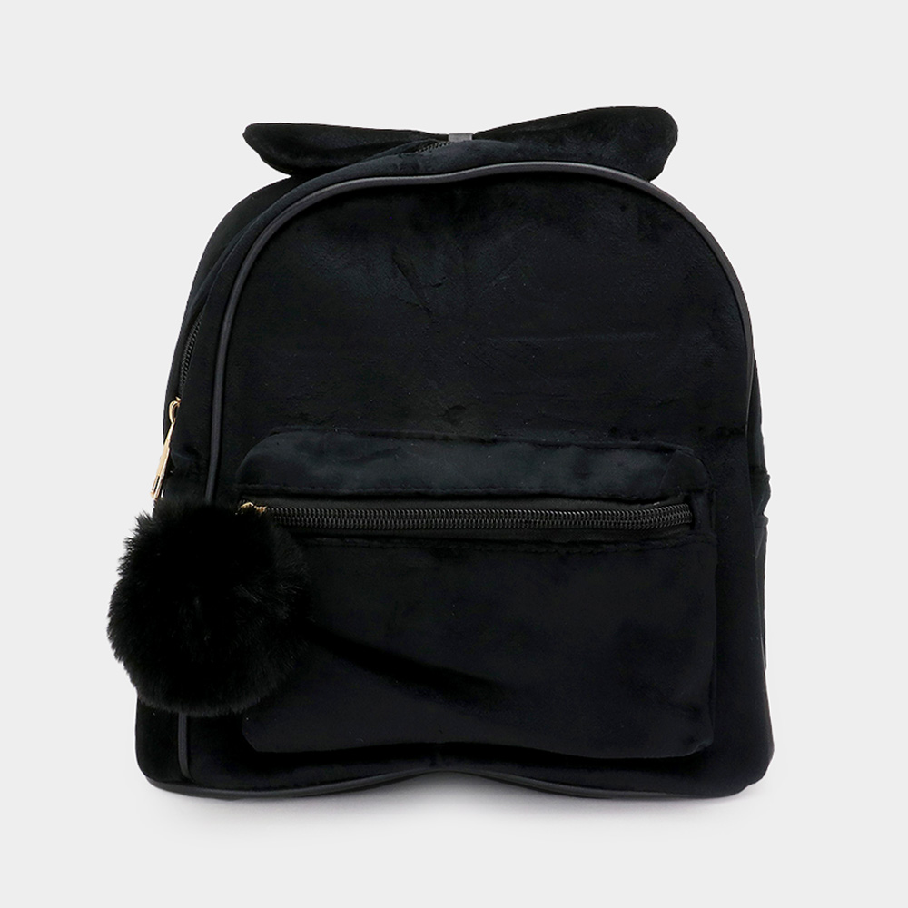 Bow Pointed Solid Faux Fur Pom Pom Backpack Bag