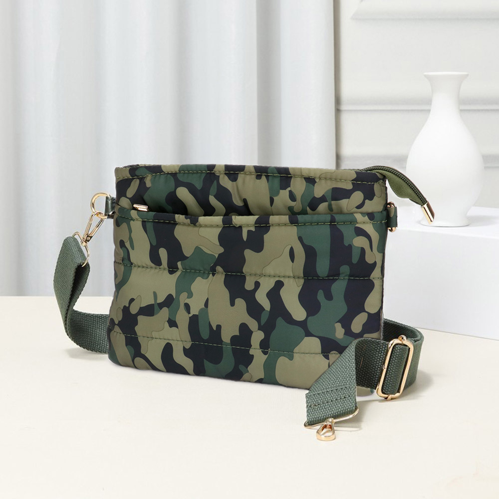 Camouflage Patterned Puffer Rectangle Crossbody Bag