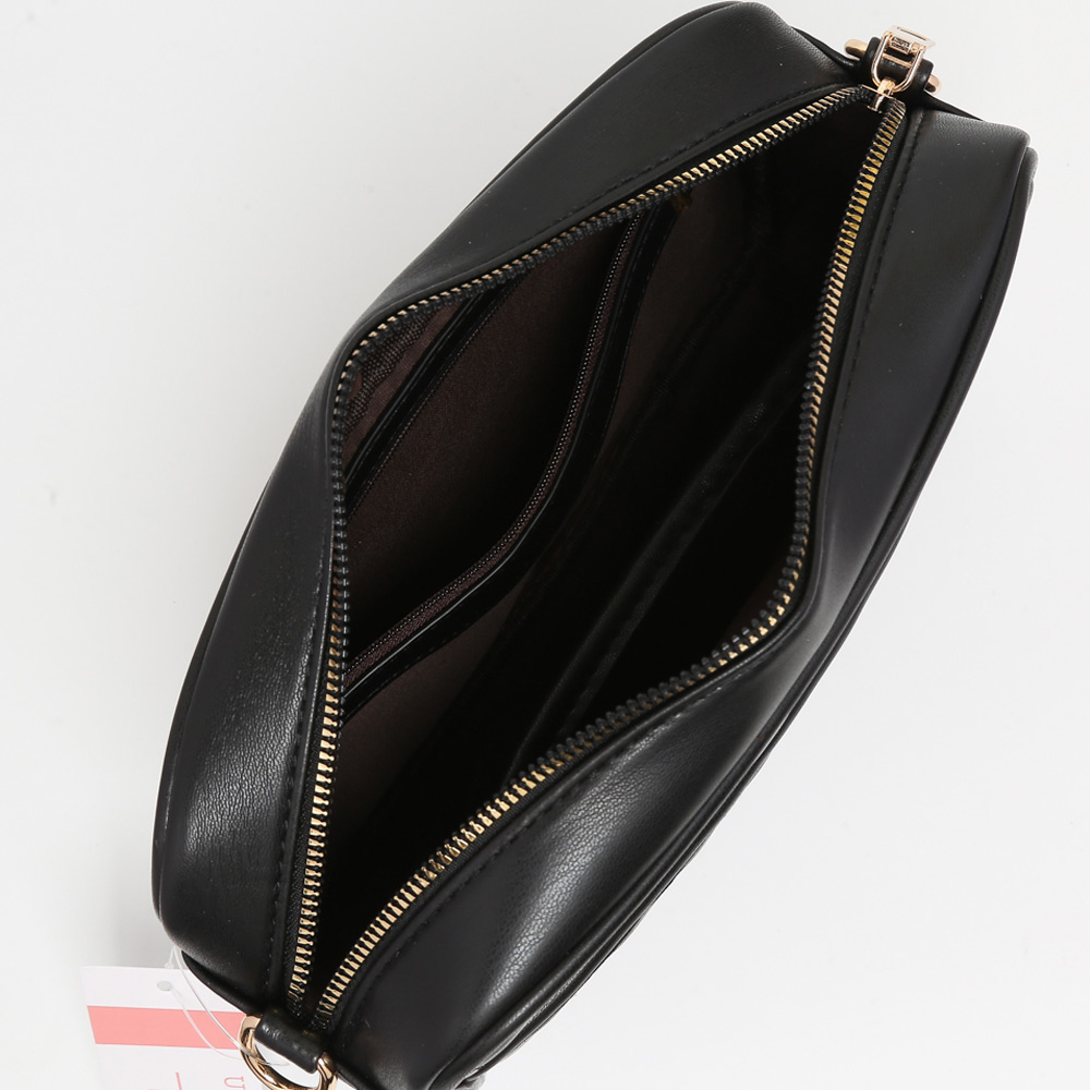 Chevron Patterned Faux Leather Round Crossbody Bag
