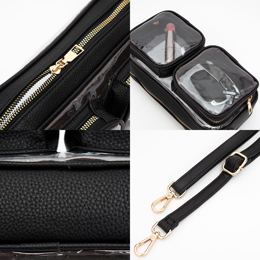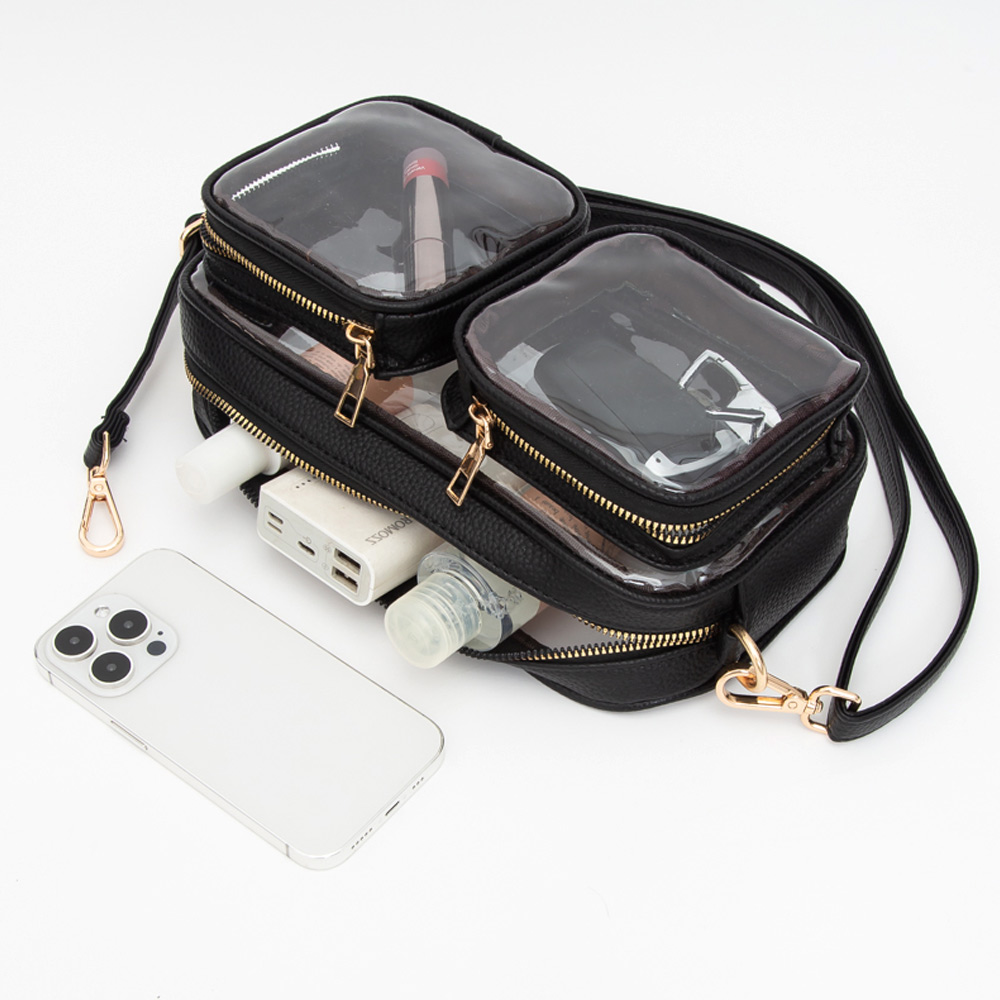 Dual Front Pocket Faux Leather Transparent Crossbody Bag