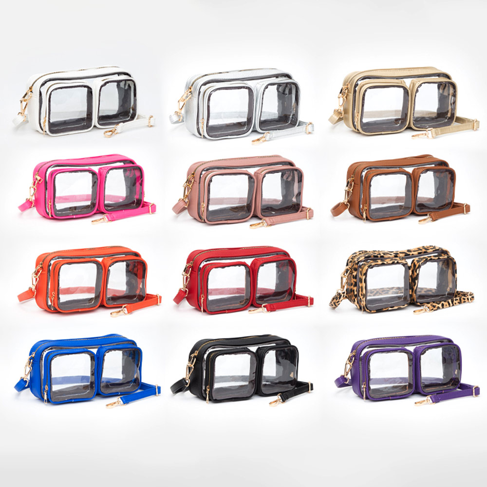 • Stay organized and event-ready with this clear stadium crossbody bag featuring dual front zip pockets and an adjustable strap. Compliant with venue regulations and perfect for concerts, sports games, and travel.